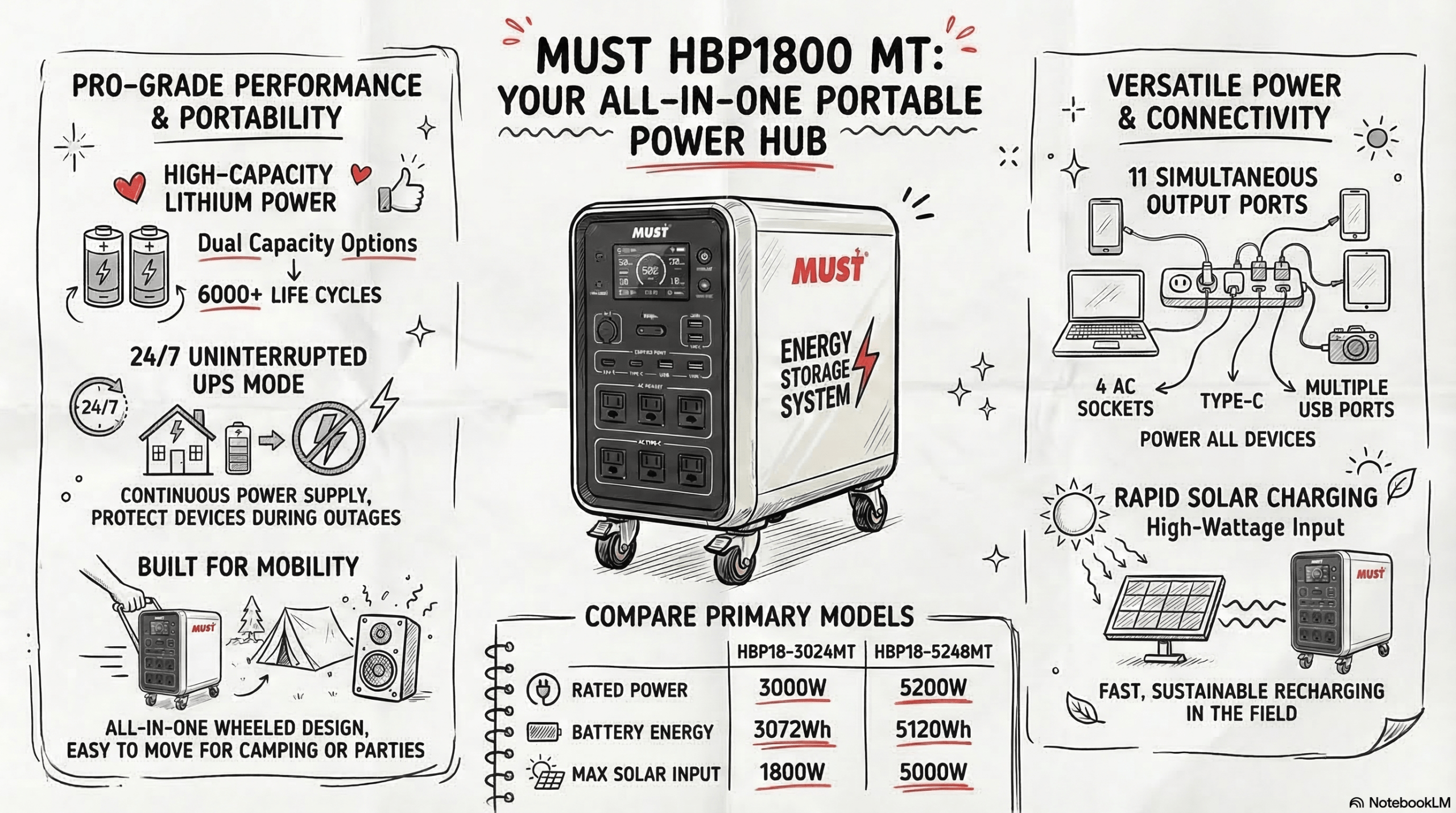 Mobile Whole-Room Backup: Easily move the unit to power essential kitchen appliances, living room entertainment, and home office setups during prolonged blackouts.