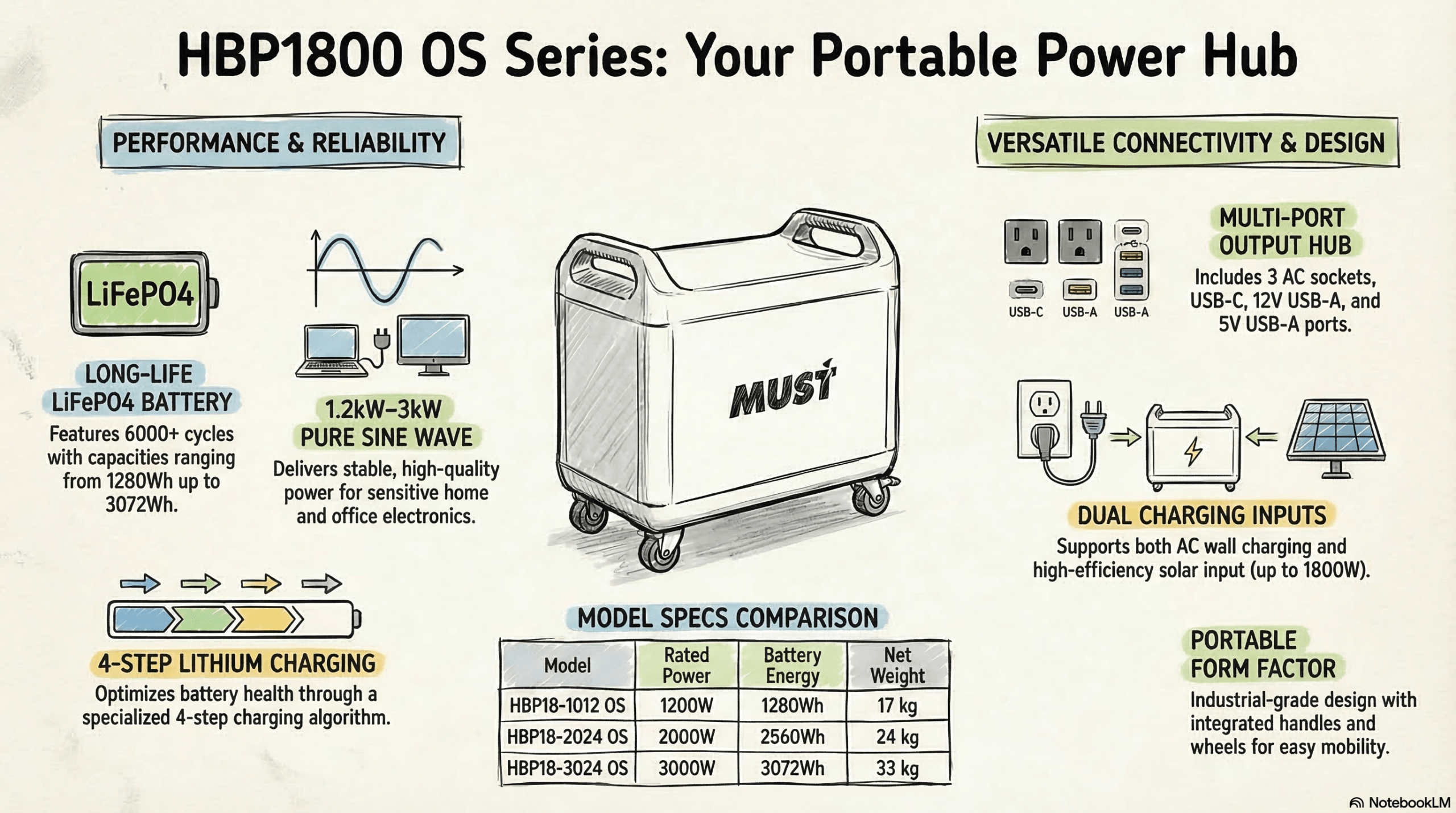 Rapid Dual Charging & High Solar Input: Maximize your charging speed off-grid. The advanced built-in MPPT controller supports up to 1800W of solar input (for 24V models), combined with fast AC wall charging, allowing for rapid energy replenishment.