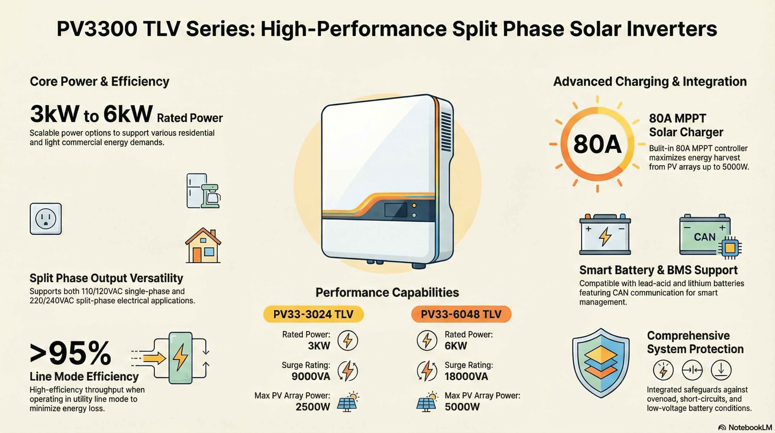 | Model | PV33-3024 TLV | PV33-3048 TLV | PV33-4024 TLV | PV33-4048 TLV | PV33-5048 TLV | PV33-6048 TLV |