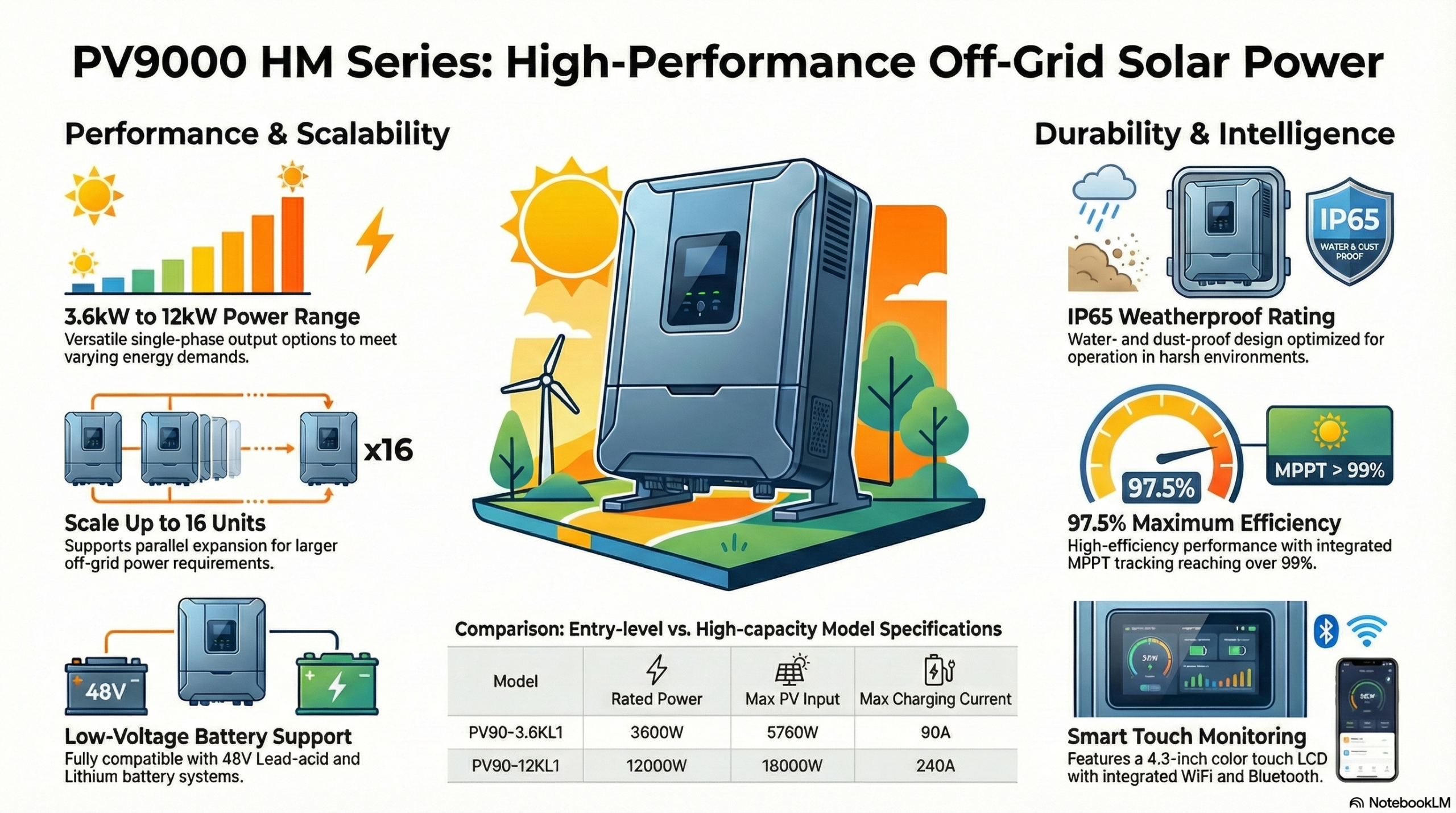 Massive Scalability: Supports parallel operation for up to 16 units, allowing users to build a massive single-phase off-grid system (up to 192KW) for large commercial or industrial applications.