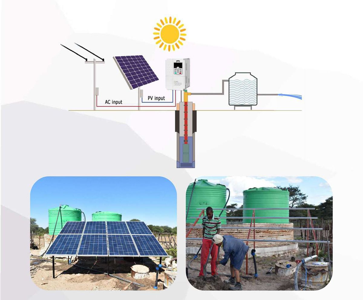 | 1.If the cabel between inverter and pump, is longer than 50m, we suggest to add filter into cable or make inverter power 2 level higher than pump power. 2.If inverter work in high temperature like desert, we suggest to make inverter power 2 level higher than pump power. | ||||||